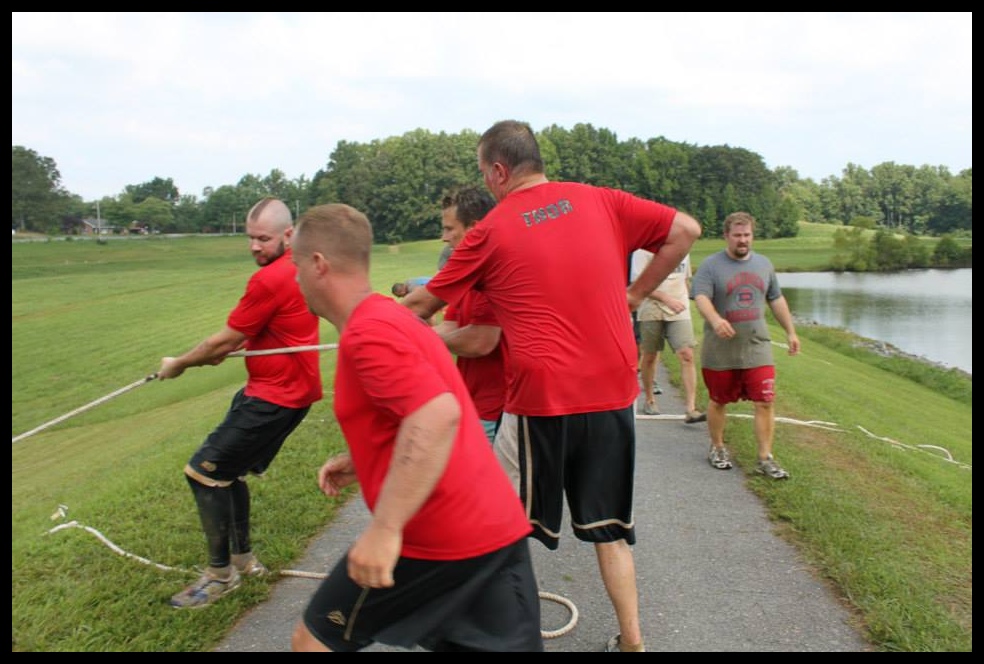 - Sled pull – Four team members climb the hill, and drag member up in a sled.